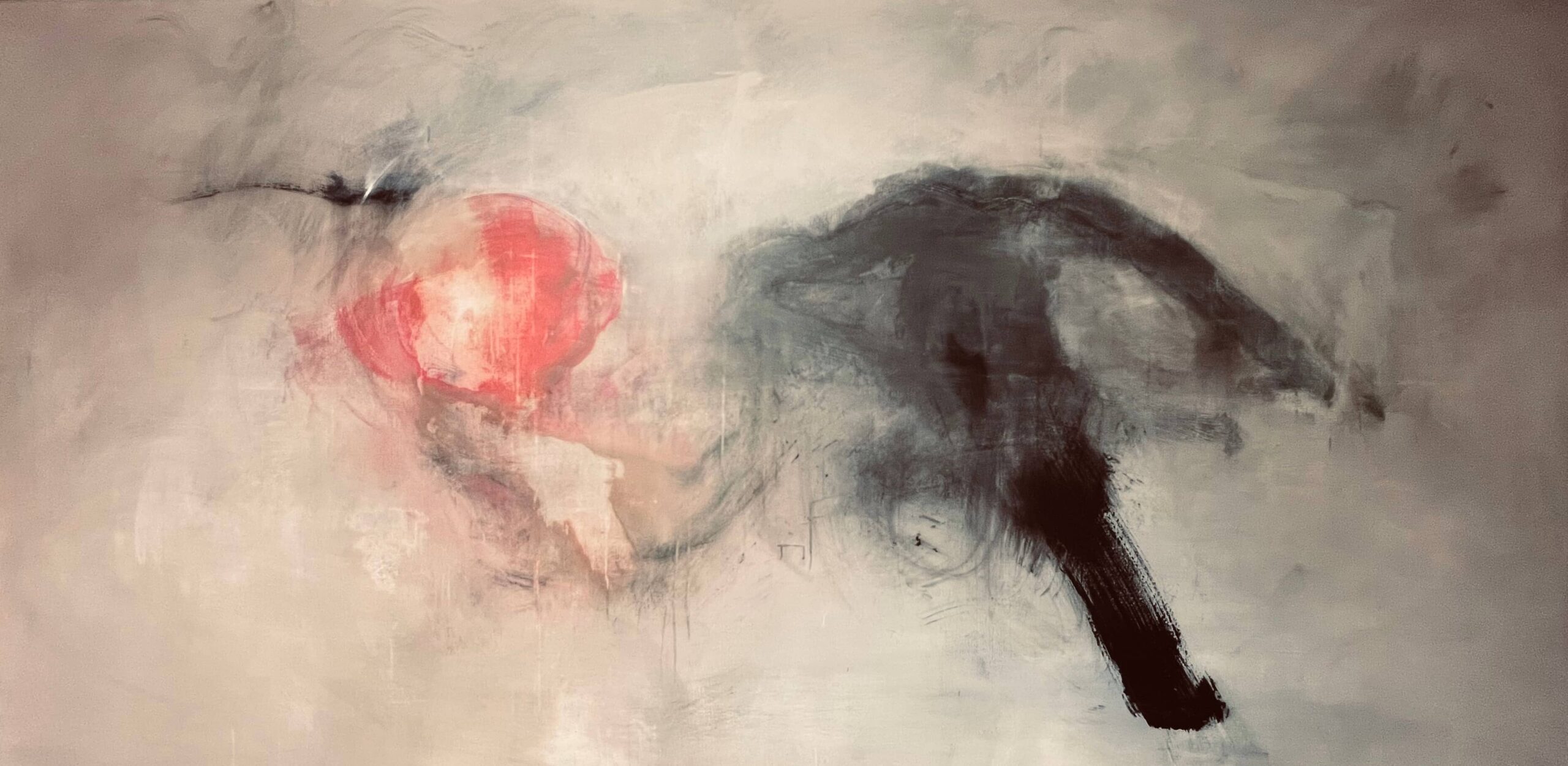 In diesem Werk erscheint der Berg nicht als festes Monument, sondern als geheimnisvolle Andeutung. In unterschiedlichen Grautönen aufgelöst, verschmilzt er mit Nebel und Wolken, sodass nur Fragmente sichtbar bleiben. Die Abstraktion lässt Grenzen verschwimmen und verwandelt das Massiv in eine schwebende Erscheinung zwischen Sichtbarkeit und Verhüllung.
